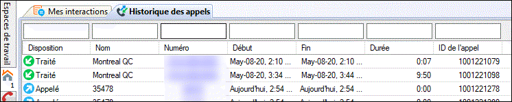 L'historique conserve un suivi des appels qui sont apparus dans Mes interactions. Il s'agit des appels qui étaient entrants pour vous, des appels que vous avez passés, des appels qui vous ont été transférés et des appels utilisés pour récupérer des messages vocaux.