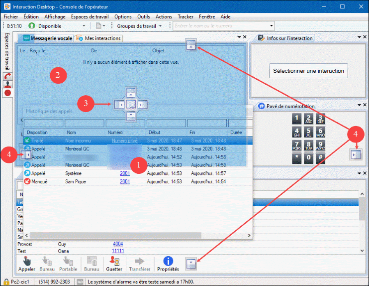 Remarque : lorsque vous quittez Interaction Desktop, la disposition de vos vues ancrées est sauvegardée.