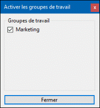 Cliquez sur Options > Activation de groupes de travail. Dans la boîte de dialogue Activation de groupes de travail, cochez la case appropriée pour activer votre statut du groupe de travail ou décochez la case pour le désactiver.