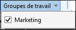 Cliquez sur le bouton Groupes de travail dans la section Mon statut. Dans le pop-up, cochez ou décochez les cases de statut d'activation des groupes de travail auxquels vous appartenez. Cliquez en dehors du pop-up pour sauvegarder vos sélections.