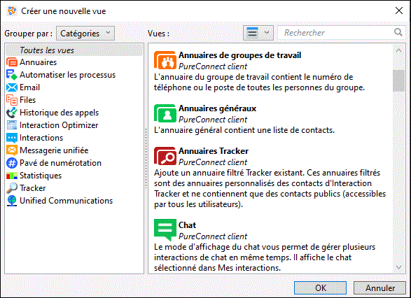 Utilisez la boîte de dialogue Créer une nouvelle vue pour choisir les vues à afficher dans le client CIC.