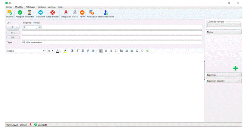 Utilisez cette fenêtre d'emails pour répondre à un email acheminé par ACD ou démarrer une interaction par email au nom d'un groupe de travail.