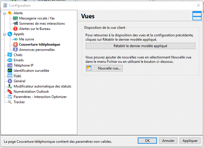 Dans la boîte de dialogue Configuration, sélectionnez le nœud Vues.