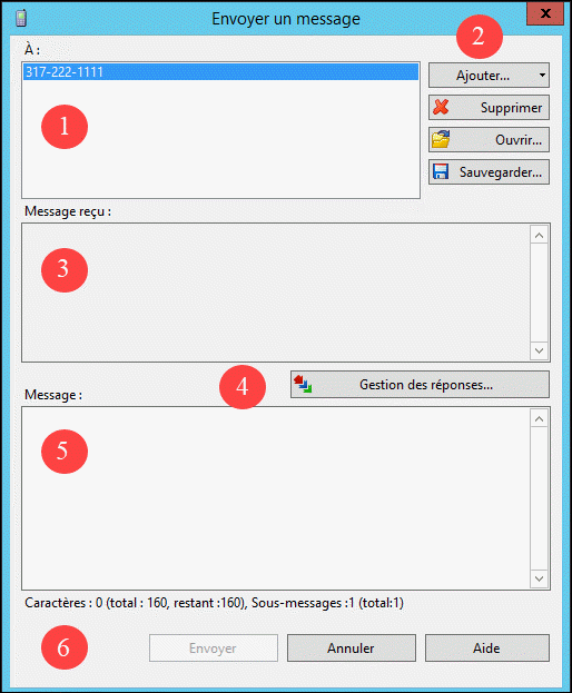 Exigences : pour plus d'informations sur les conditions préalables à l'utilisation de la fonction Short Message Service, consultez la rubrique Traitement des messages texte.