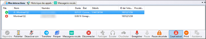 La barre d'outils de contrôle de file vous permet de gérer vos interactions. Elle apparaît dans chaque vue de gestion de la file d'attente.