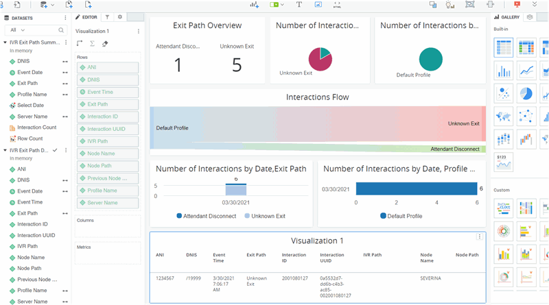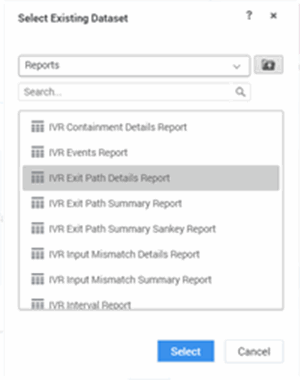 - Select Existing Dataset from Dataset Panel and select IVR Dashboards→ Reports→ IVR Exit Path Summary Report.