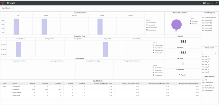 CX Insights agent dashboard visualizations help you monitor agent status and agent interaction details in real time. Workgroup dashboard visualizations give supervisors a quick view of the available agents and their current states.