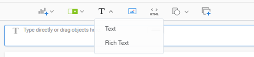 Rich Text along with Text is present in the menu expanded from the Text option present in the center toolbar.