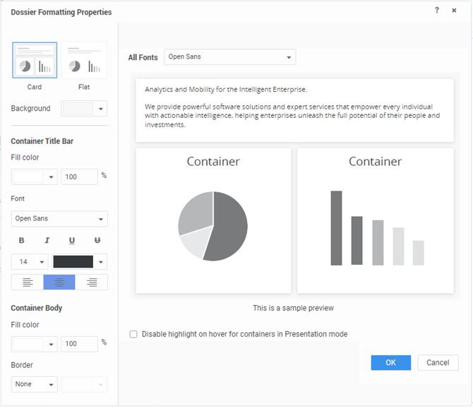 Along with the Fill Color option in the Container Body, an entry for the percentage of the color to be filled is included in the Fill Color section. This feature update can be witnessed at various places within the web application.