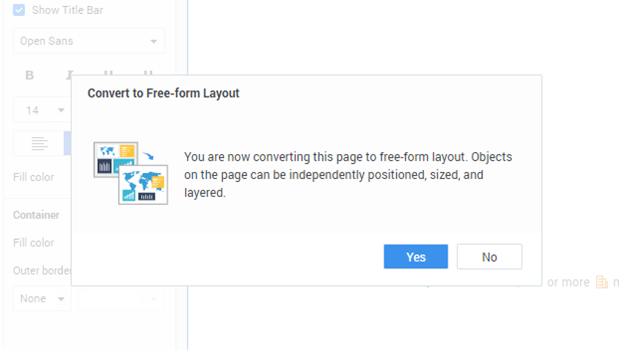 The above convert to Free-form layout option within the toolbar section provides the user to independently position objects on the page and to size them and layer them accordingly.