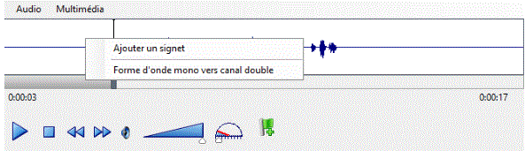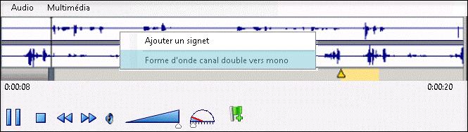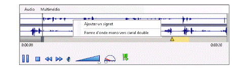 Pour ajouter un signet à l'aide du menu de raccourcis, pendant la lecture de l'enregistrement, cliquez avec le bouton droit sur la forme d'onde, puis sélectionnez Ajouter un signet.