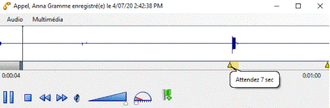 La fenêtre Lecture audio apparaît et la lecture de l'enregistrement commence.
