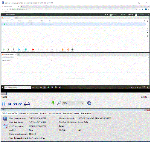 Pour lire une interaction enregistrée, dans la vue Résultats de la recherche de l'espace de travail, dans la liste des interactions enregistrées, double-cliquez sur une interaction.
