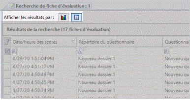 Les résultats de la recherche de fiche d'évaluation sont initialement affichés dans une vue sous forme de graphique.