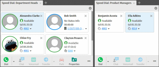 Speed dial views can include photos or images for each entry. The type of entries you see depend on whether your CIC administrator enables this type of display and how wide you make the view tab.