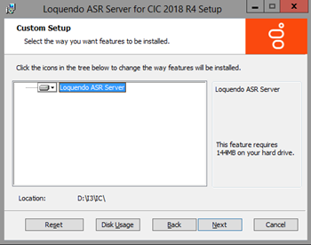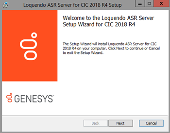 Copy the LoquendoASR_2018_R4.msi file to the server on which you plan to run this install and double-click to start it. The Welcome page in the Loquendo ASR Server Setup wizard appears.