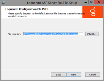 Type your Windows logon credentials and the domain name in the boxes and then click Next. The Loquendo Configuration File Path page appears.