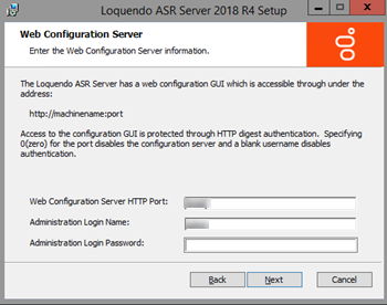 Specify the Web Configuration Server HTTP port and administrator credentials.