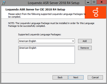Select the Loquendo Language package to use and then click Next. The Ready to install Loquendo ASR Server page appears.