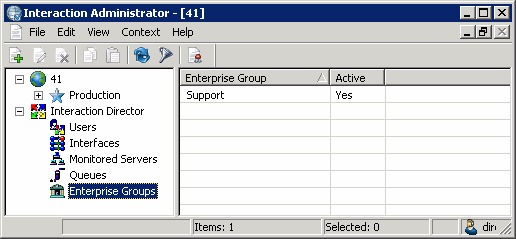 On the Director server, start Interaction Administrator and then click the Enterprise Groups container.