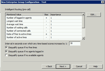 Intelligent Routing (pre-call): If selected, Director uses pre-call routing for the enterprise group. For more information, see Pre-call Routing.