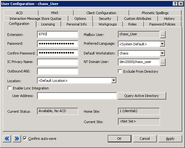 In the right-hand pane, double-click the user name to edit. The User Configuration dialog box appears.