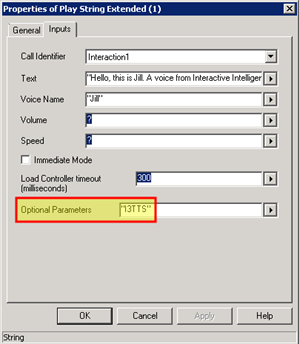You can also specify other parameters to control various characteristics of the synthesized speech of Interaction Text to Speech.