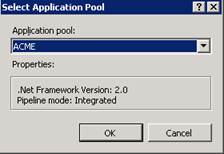 In the Application Pool box, select the application pool you specified in step 3 of Create an application pool.