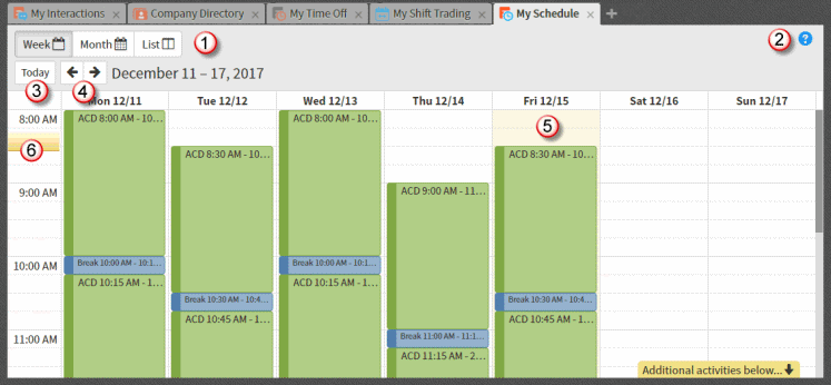 Requirements: You need the Customize Client Security right to display the My Schedule view. For additional requirements, see Agent Optimizer Features and Requirements.