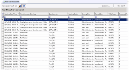 Based on the attributes of the search, when a search is run the results are displayed in the Scorecard Search Results view in the Workspace.