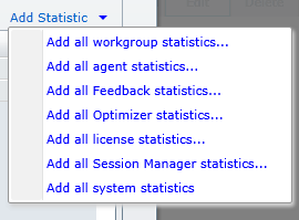 When you click the Add Statistic drop down arrow, you’ll see a menu that allows you to select groups, or more specifically entire categories, of statistics. As you will see, only a small set of categories is available. These groups represent the most commonly used statistics.
