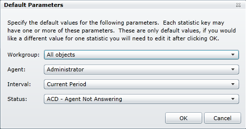 When you select a group of statistics, you will see the Default Parameters dialog where you can specify the default values for all of the parameters that are associated with that particular statistic category. Once you click OK and the statistics are added to the package, you can individually edit the parameters as you need.