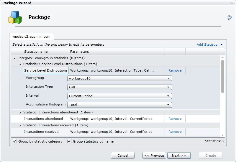When you click Next, the Package Wizard displays a page which lists all the statistics that are included in the XSL File set that you selected and provides you with the ability to modify those statistics.View this page