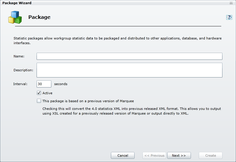 If the package is based on a previous version of Marquee, you must select the check box labeled This package is based on a previous version of Marquee.