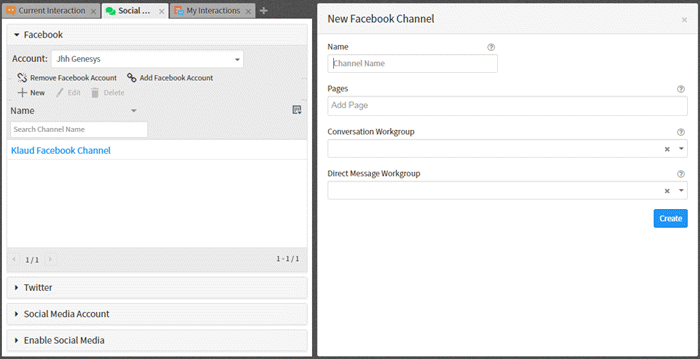 A channel represents a Facebook page. CIC routes visitor posts and direct messages on the selected Facebook page to the selected workgroup.