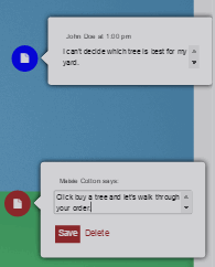 Pour afficher du texte directement sur la page Web du visiteur, cliquez sur l'icône Annotation. Vous pouvez placer l'annotation n'importe où sur la page Web. Le visiteur dispose d'une commande similaire et peut poser des questions ou répondre. Vous-même et le visiteur pouvez voir toutes les annotations effectuées sur cette page Web.