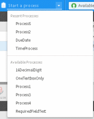 Cliquez sur la flèche vers le bas en regard de Démarrer un processus. Dans les listes Processus récents et Processus disponibles, cliquez sur le nom d'un processus.