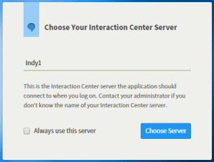 Dans la boîte de dialogue Choisir votre serveur Interaction Center, effectuez l'une des opérations suivantes :