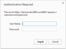 Si vous avez sélectionné Authentification Windows, dans la boîte de dialogue Authentication Required (Authentification obligatoire), entrez votre nom d'utilisateur Windows et votre mot de passe. Cliquez sur Se connecter.