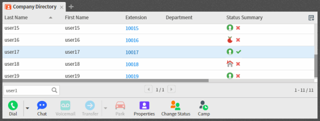 La barre d'outils Annuaire permet de travailler plus facilement avec les contacts et de gérer le flux des interactions entrantes. La barre d'outils Annuaire propose des actions impliquant des entrées d'annuaire et des interactions actives. La barre d'outils Annuaire est située au bas de chaque onglet d'annuaire.