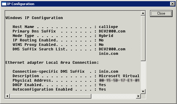 For information about Internet Protocol, press IP Configuration. When you are finished, press Close.