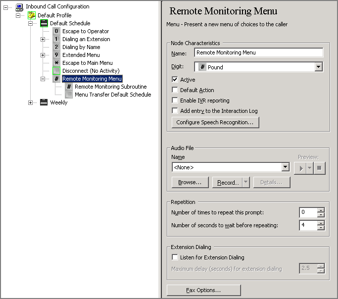 To enable remote monitoring, Interaction Attendant users must make several modifications to menu nodes and handlers. Use the following procedure: