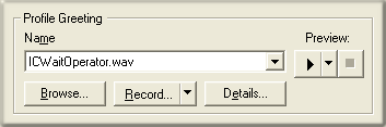 These embedded audio controls manage the optional greeting that plays when a call enters this profile. See manage voice prompts for more exhaustive information.