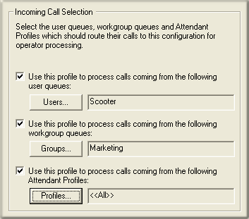 Use this profile to process calls coming from the following Attendant Profiles check box