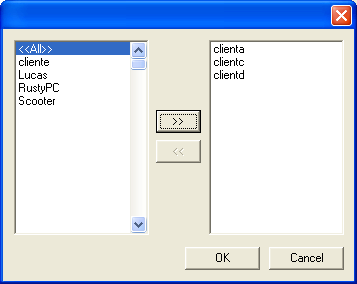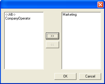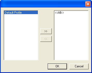 Select profiles by name in the list on the left. Click and drag to make contiguous selections, or ctrl-click to make discontiguous selections. Then press >> to add your selections to the list on the right. It contains the names of profiles that you have selected. Items can be removed from the rightmost list by selecting them and pressing <<. To quickly select all profiles (present and future), add <<All>> to the right side list.