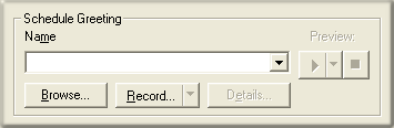 Controls in this frame set a prompt to play when call control is passed to this schedule. If you do not select or record a prompt using the embedded audio controls, no voice prompting will occur. See manage voice prompts.