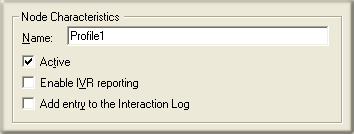Options in this frame name the profile, establish whether or not it is active, logged, or tracked for IVR reporting purposes. Unlike operation nodes, profiles cannot be assigned a digit, since profiles are always compared to the characteristics of a call.