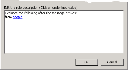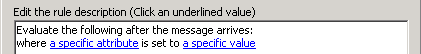 Use the property editor that appears to set values for the rule to evaluate. Property editors are available for search words and phrases, for setting message priority (Importance), for distribution lists, and attributes.