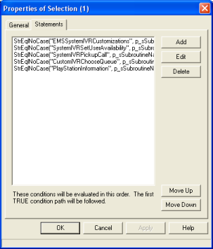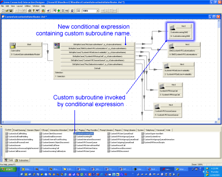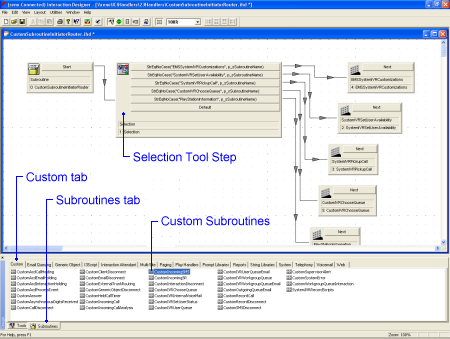 Note: If you have multiple custom subroutines, you will have to call your own selection tool steps. For example, if you have three custom subroutines, you must hook up a selection step and enter the appropriate name in Interaction Attendant.