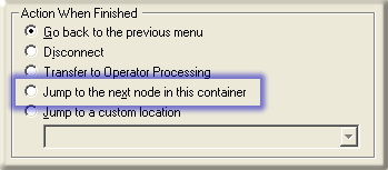 If "Jump to the next node" is selected and the node is copied or dragged out of the container, the Action When Finished selection reverts back to the default "Go back to the previous menu".
